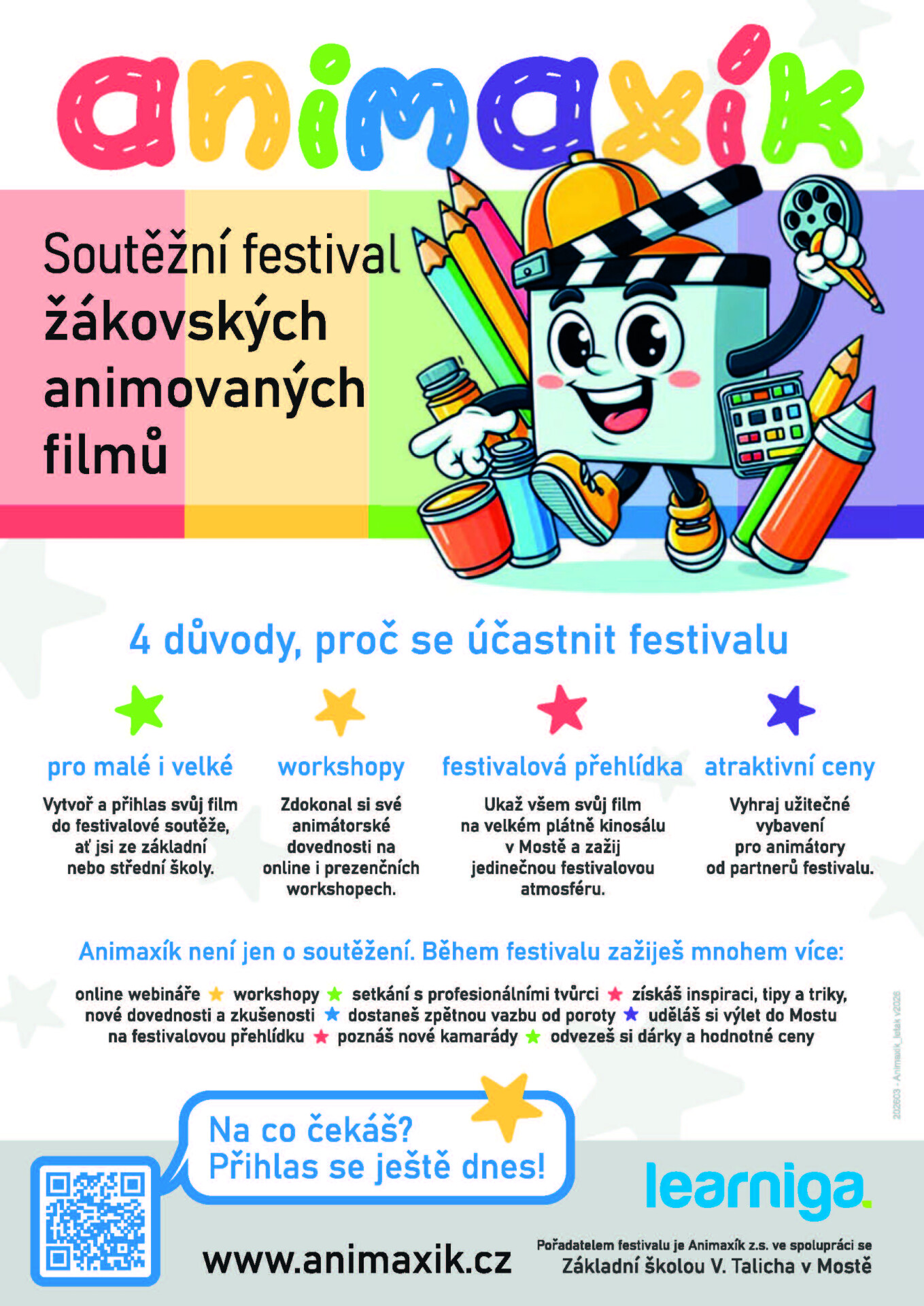 Animaxík 2026 je otevřený pro všechny mladé animátory, kteří chtějí ukázat svůj talent a kreativitu. Nejenže uvidí svá díla na velkém plátně, ale také získají jedinečnou šanci okouknout nejlepší tipy a triky od profesionálů. Navíc můžou vyhrát zajímavé ceny v podobě vybavení pro animátory od sponzorů festivalu.